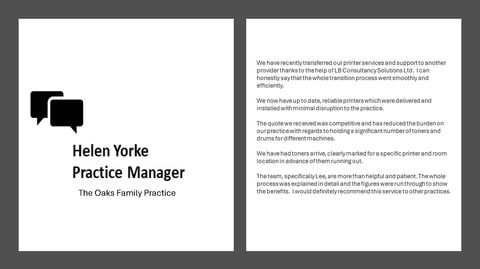 At LB Consultancy Solutions Ltd, we are dedicated to empowering GP Practices by providing tailored technology solutions that create cost savings and improve efficiencies. Our expertise in technology allows us to develop fit-for-purpose print solutions and supply consumables specifically tailored for the Primary Care world. With our focus on technology, we aim to revolutionize the way GP Practices operate and deliver patient care.